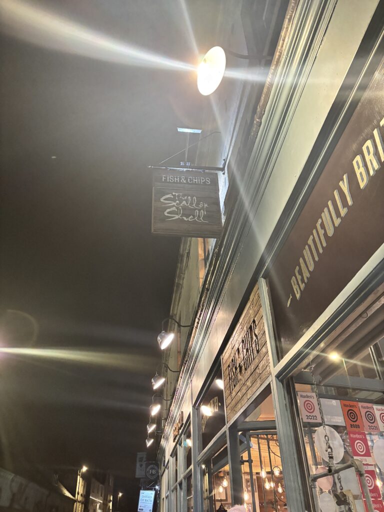 Another recommendation and one that I am sad to say we needed a reservation for (on a random Monday evening). This is supposed to be the place in Bath for fish and chips and any other seafood you might want. The menu looks amazing and the atmosphere was really nice with the kitchen area being open to the rest of the restaurant. I’m still so sad we weren’t able to sit down here, and I’m sorry to say, the pub we ended up getting food at isn’t worth a mention. Next time I’m in Bath I’ll be sure to reserve beforehand.