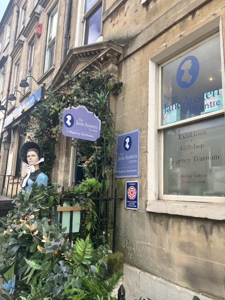 Once you arrive, when you walk out of the station, there is a bus terminal going all over the city. We took a bus into city center and then walked to the Jane Austen center (our first stop). It isn’t so far to walk if you are up for it and want to skip the bus, but it was only £1.20 for a bus ride and you can tap on. Once you’re in the middle of town, walking around to everything is pretty easy. There are some hilly parts of town, so keep that in mind if you