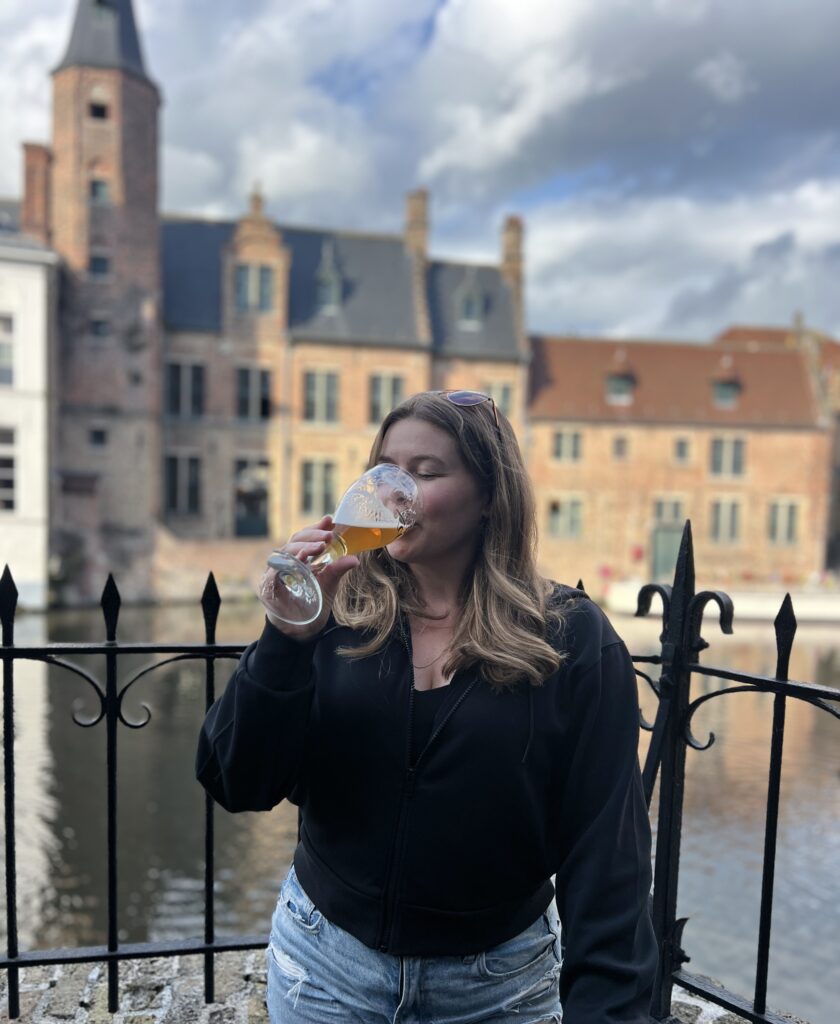 This was a spot that we walked past on the walking tour and our guide recommended coming back to try the beer. It is the only place you can get the unfiltered versions of the beer and it was delicious! The beer literally gets transported through pipes underground from the factory to the brewery! I tried the unfiltered zot, the rose beer, and their seasonal summery beer. My favorite was the regular brugse zot. I highly recommend coming here if you are into beer – it’s a stop you really don’t want to miss in Bruges!