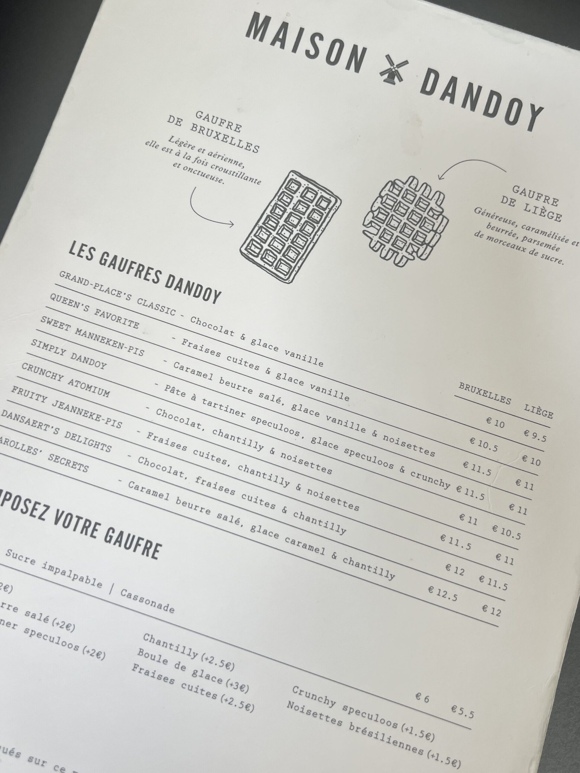 Another recommended stop if you want a waffle. It is a little walk-up booth and the waffles were good! Not on the same level as Maison Dandoy in Brussels, but it was good if you’re looking for a sweet treat while you walk around!