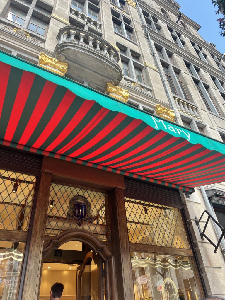 Don’t be confused by Maison Dandoy’s website – they specialize in waffles, but have lots of yummy sweets to offer! You can choose between the softer, round version or the Brussels version, which is crunchier and square. I went with the latter, and got mine with strawberries and vanilla ice cream! It was delicious, of course! They have more than one location, but I went to the one in the galeries, which has a pretty view and is indoors if the weather isn’t that nice. See the photos for an idea of what I mean.